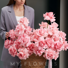 Шукаєте ідеальні квіти або продуманий спосіб привітати когось? Букет «Cherry Blossom» — це елегантний вибір. Цей великий букет квітів, що складається з приголомшливих рожевих троянд французького стилю в чарівному кошику, ідеально підходить для вираження кохання, захоплення або щирої вдячності.