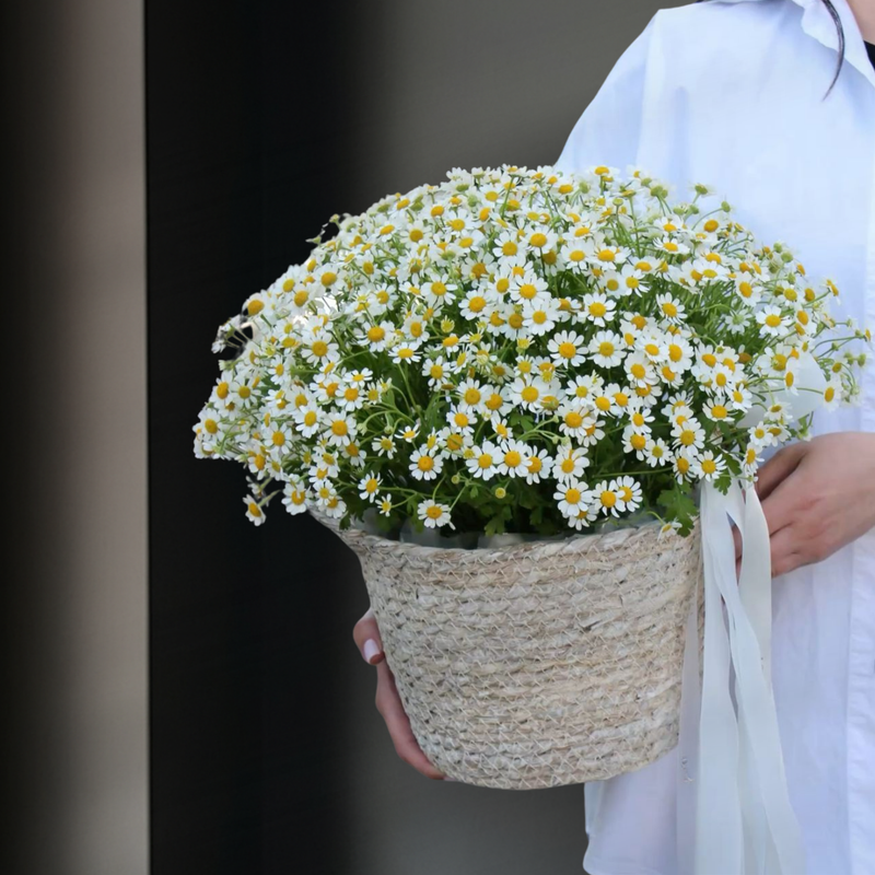 На фотографії зображений букет розміру M. Порадуйте когось нашим букетом «Just a Daisy», в якому свіжозрізані квіти ромашки випромінюють простоту і чарівність. Ця чудова композиція є ідеальним втіленням краси, що криється в простоті квітів у букетах, і демонструє елегантність дарів природи.