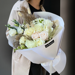 У нашій квітковій студії кожна композиція є унікальною та неповторною. Використовуючи красу сезонних квітів, наші досвідчені флористи ретельно розробляють кожен букет, щоб відобразити індивідуальність і стиль одержувача. У разі, якщо певні квіти недоступні по сезону, наша команда залишає за собою право зробити заміну рівноцінної або більшої вартості ніж представлено на фото, забезпечуючи гармонійність загальної кольорової гами та розміру композиції. Довіртеся нашому досвіду, щоб отримати вражаючий та персоналізований квітковий буккет, який відображає ваш стиль, статус та смак.